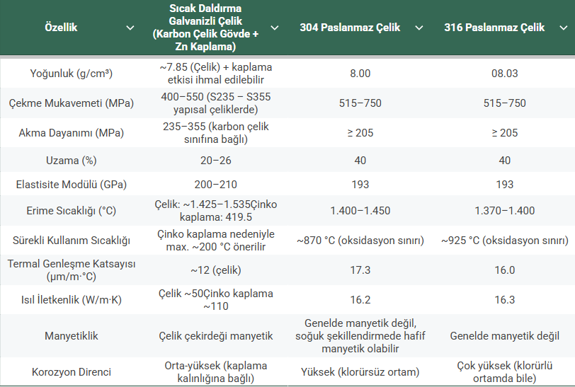 Başlangıç Maliyeti: Sıcak daldırma galvaniz genellikle daha ekonomiktir. Paslanmaz çelik, özellikle 316 kalite, daha yüksek bir başlangıç maliyetine sahiptir.