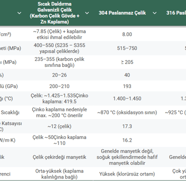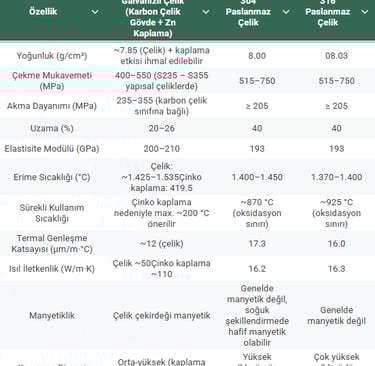 Maliyet ve Bakım: Kaliteye Yatırım Paslanmaz çelikler, genel olarak galvanizli çelikten daha yüksek bir başlangıç maliyetine sahiptir. 316 kalite, molibden ve nikel içeriği nedeniyle 304'e göre 2 kat daha maliyetli olabilir. Ancak paslanmaz çelik de düşük bakım gerektiren bir malzemedir. Özellikle 316 kalitesi, zorlu ortamlarda erken arızaları önleyerek uzun vadede bakım ve değiştirme maliyetlerinden tasarruf sağlayabilir.
